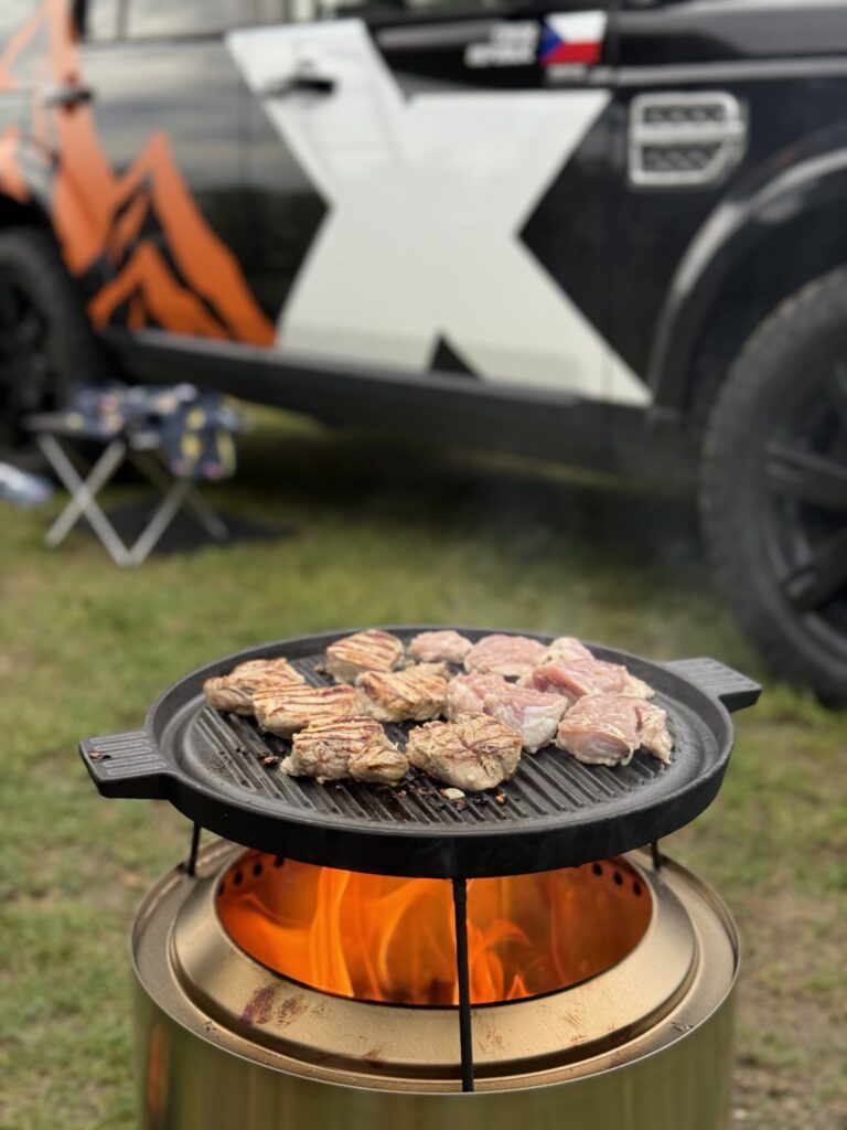 Díky kvalitnímu zpracování a robustním materiálům zvládne kuchyně EGOE každodenní používání i v náročném terénu. Vaření na expedici tak není nutností, ale příjemnou součástí celého zážitku. Pro společné večery je navíc k dispozici bezkouřové ohniště Solo Stove s možností grilování, případně plynový gril, který sdílí celá skupina. Jídlo se tak často stává místem setkávání, sdílení zážitků a plánování dalších dní.